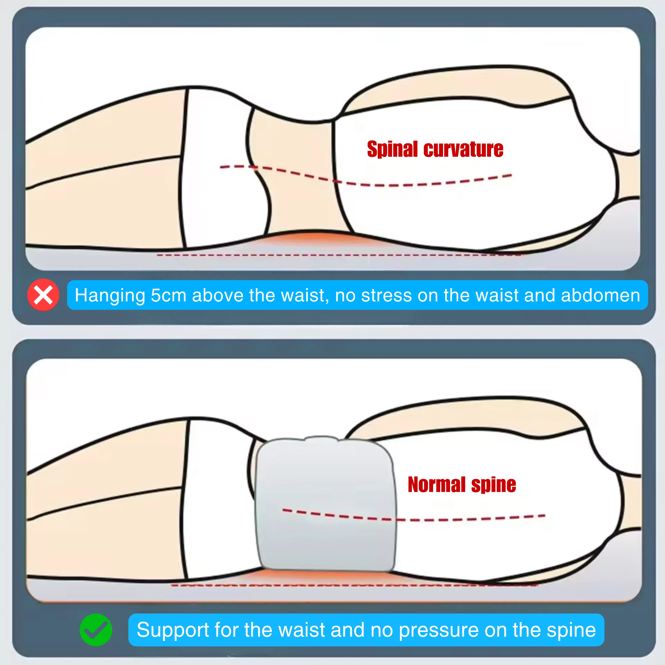 Some experience relief as early as the first few nights as their spine begins to decompress and realign.Simply place the pillow behind your lower back while lying down.