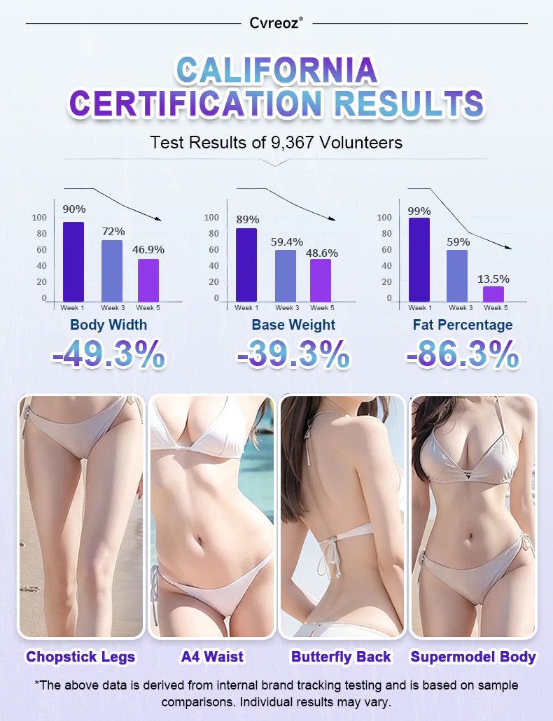 In clinical studies, users of Cvreoz® Dual-Action Slimming & Skin-Nourishing Oral Solution achieved impressive results, with some losing as much as 6–8 lbs of stubborn fat in just one week. With only one dose per day, it effectively targets and burns visceral and abdominal fat, helping to sculpt a leaner body — no intense workouts required.