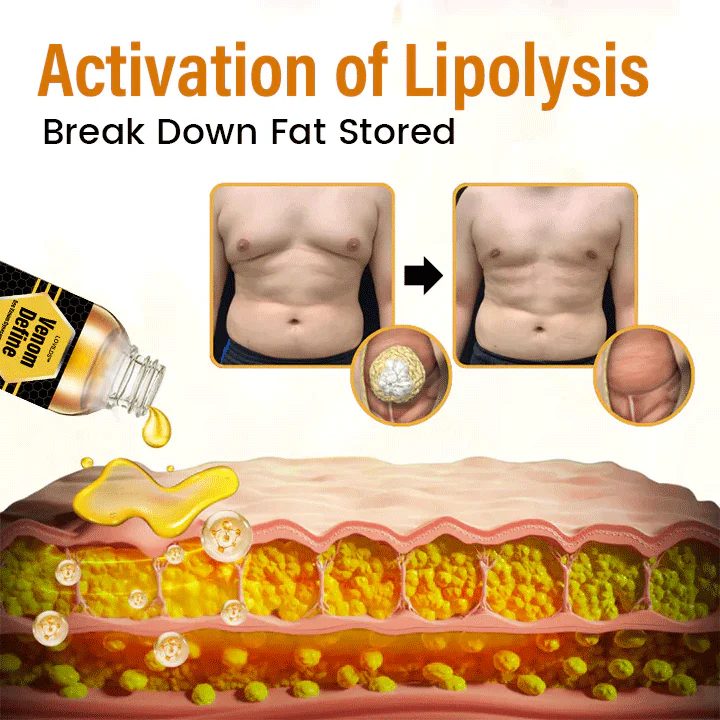 LOVILDS™ VenomDefine Bee Venom Oil contains a powerful blend of active ingredients, with one of the core components being a natural bee venom extract. Its key compound, Melittin, activates the body’s lipolysis mechanism, penetrating deep into the subcutaneous fat layer to target localized fat deposits. This helps break down excess fat cells, effectively reducing chest fat accumulation and glandular enlargement in men.