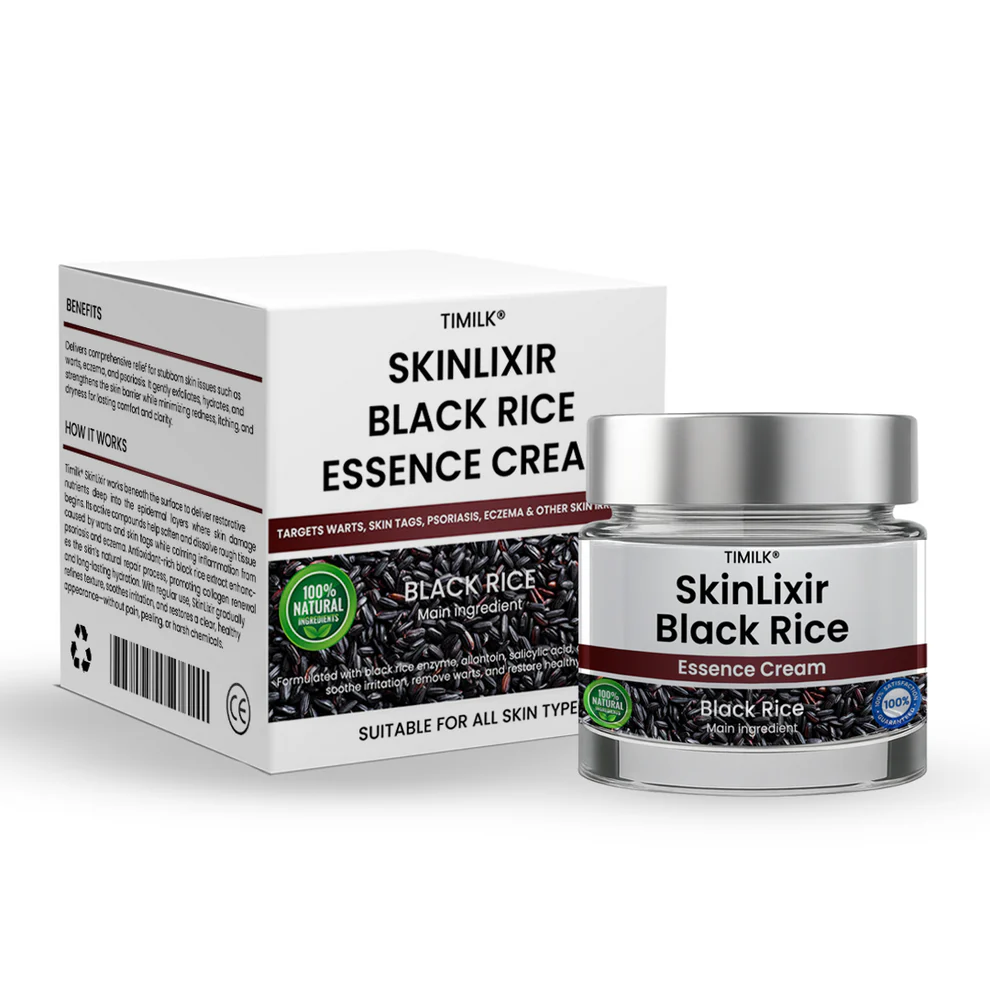 Timilk® SkinLixir Black Rice Essence Cream is enriched with nutrient-dense black rice extract and a blend of restorative plant-based ingredients. This advanced formula delivers precise care for persistent skin concerns without the pain or damage caused by harsh chemical removers. It works beneath the surface to calm inflammation, nourish the skin, and encourage healthy regeneration—promoting clear, smooth, and healthy-looking skin over time.